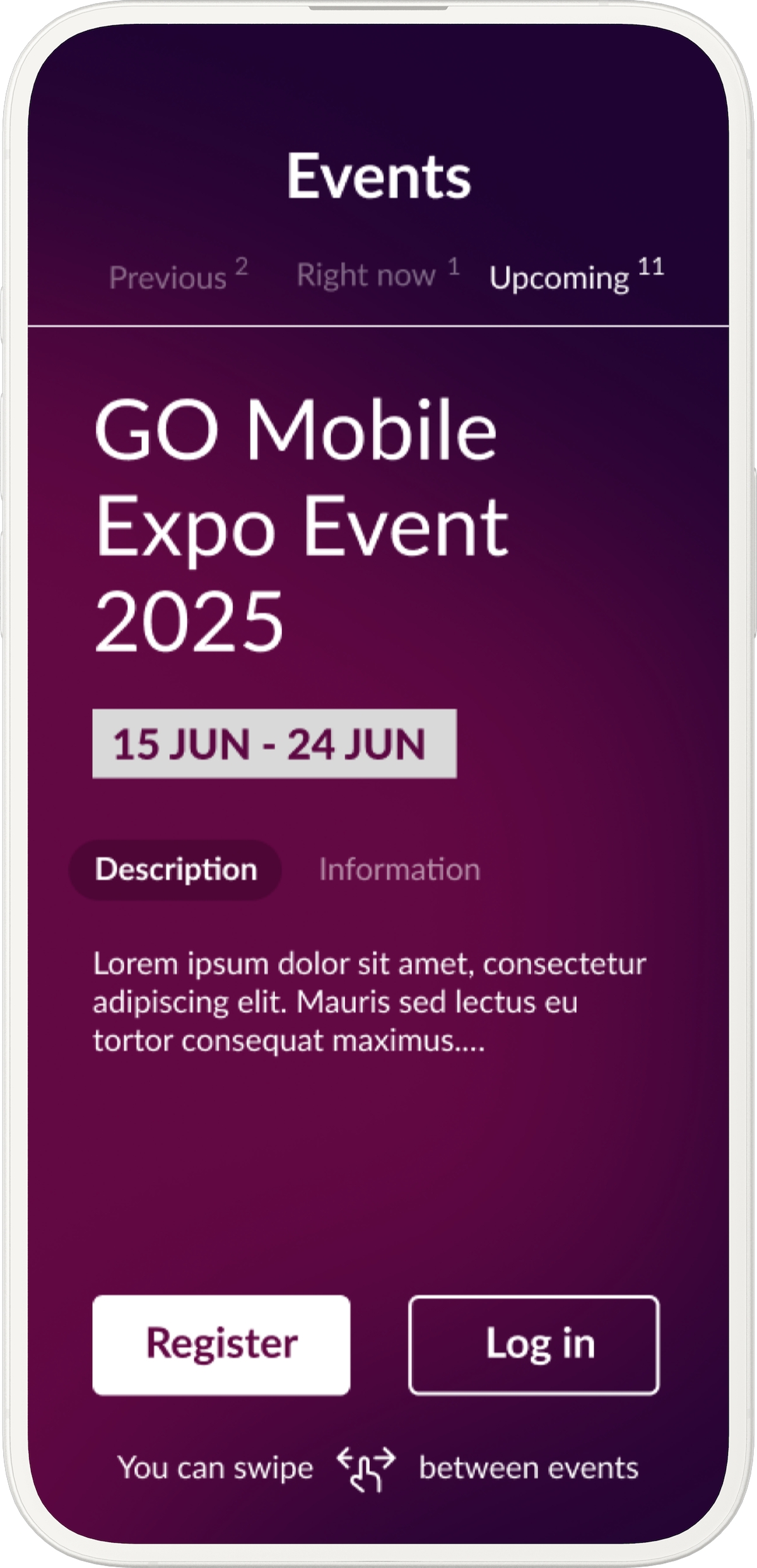 Vores event app understøtter én eller alle dine events med præcis den funktionalitet og de services, som den indviduelle event har behov for.